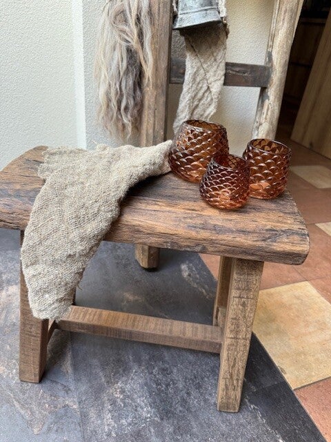 Countryfield waxine lichtjes houder , glas schulp bruin, set van 3