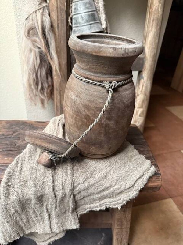 Hoge pot met deksel met touw, egalen de buik, 29cm