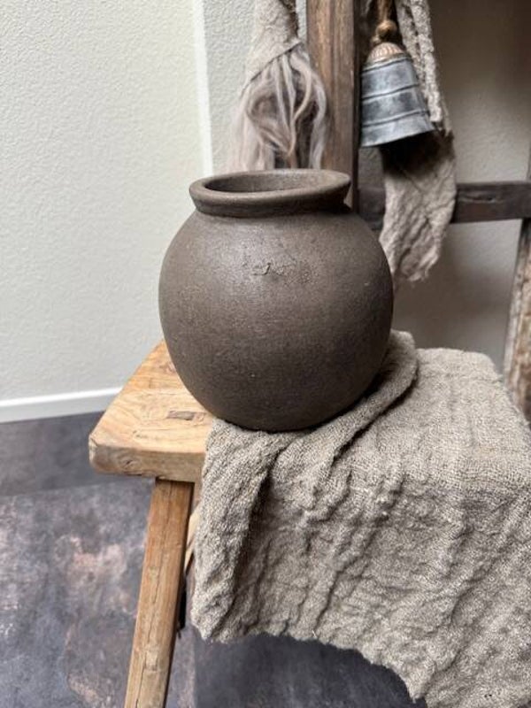 2029, Stenen bruine ronde pot/ vaas,