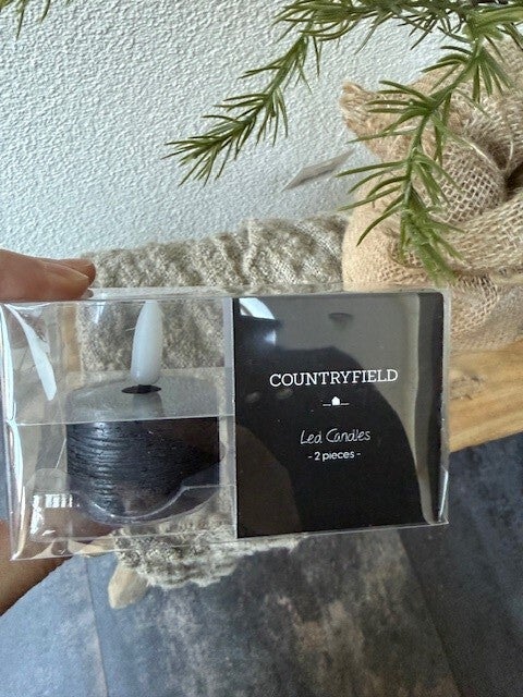 2082, Countryfield theelichtjes, normaal formaat, Zwart 2st. Incl batterij , wax omhulsel